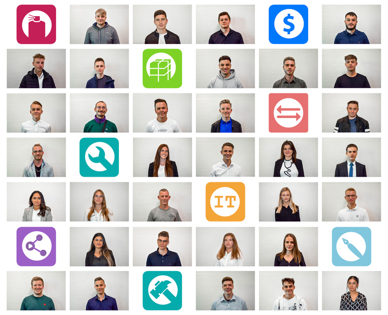 Die 43 neuen Auszubildenden der Hülpert Unternehmensgruppe verteilen sich über alle Berufsgruppen des Unternehmens; so gibt es Auszubildende in der Verwaltung, dem Service, der Logistik und der Werkstatt.